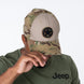 Inspired by the Iconic Jeep® Willys - our Jeep® "Star Camo" Hat pays homage to the original. The fabric front features a woven Jeep Star patch and the camo fabric back features an embroidered Jeep Logo on the side.