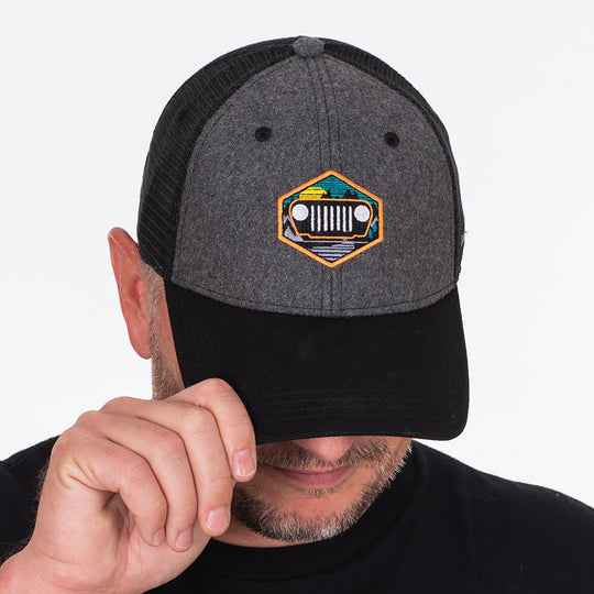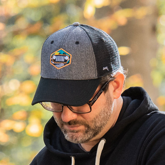 Throw on our Jeep® “Through The Mountains” Hat for a comfortable, relaxed fit while repping that seven slot lifestyle! Featuring a structured gray wool front panel with a vibrant embroidered Jeep® Grille against a mountain backdrop, this is...Regular price $22.80Regular price $22.80 -