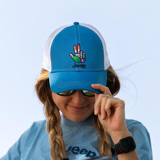 The Jeep® “Mountain Wave” Hat features a vibrant embroidered mountain scene within the iconic Jeep Wave. One Size Fits Most Blue Cotton Twill Brim with Embroidered Mountain Wave Logo & Jeep® Logo White Super Soft Mesh Snap Back Closure 6-Panel, Structured...Regular price $30.00Regular price $30.00