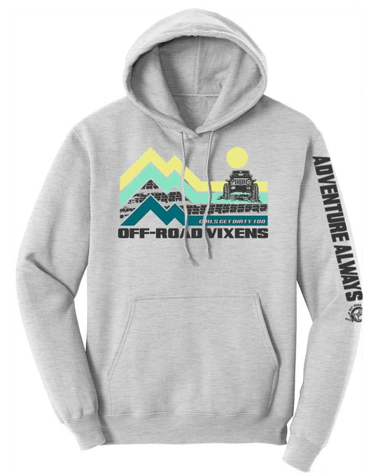 Jeep is the word! Rock this new design on the trails or the track. Super comfy Silver pullover hoodie with new Jeep Adventure design on front in chartreuse, mint and vintage teal, with our popular saying...Regular price From $52.00Regular price From $52.00