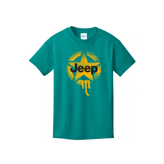 Built for comfort and style, this youth tee features soft 100% cotton fabric and a removable tag for easy wear. The bold Jeep® Graffiti Star graphic in black and orange pops against the bright aqua backdrop,...Regular price $29.95Regular price $29.95