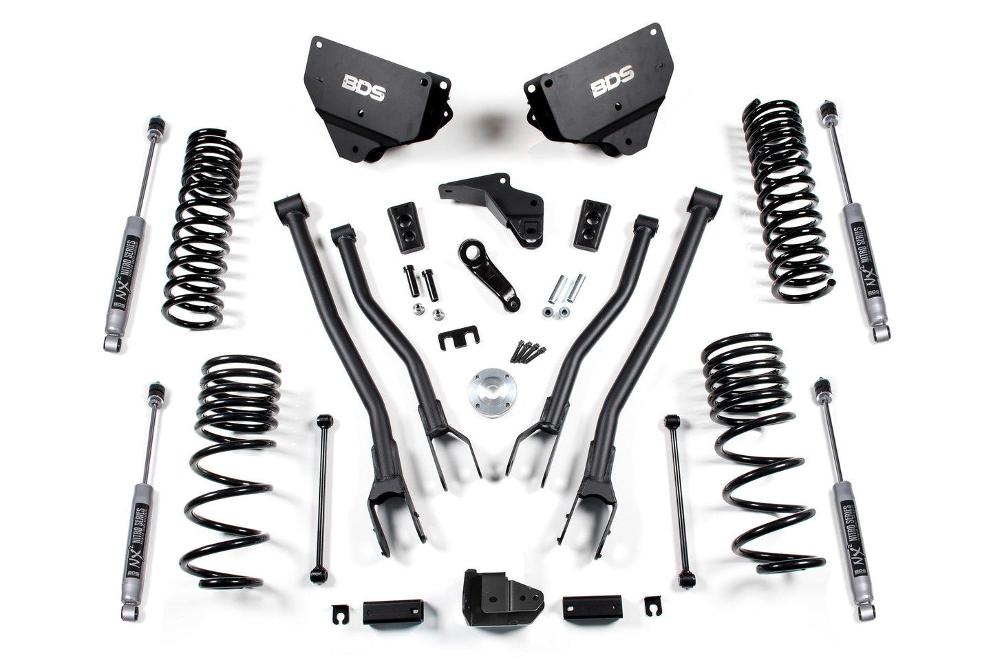 Built to outperform, BDS Suspension engineered a 4-inch lift kit with 4-Link conversion for your 2014-2018 RAM 2500 diesel powered truck that will surely impress. Designed to improve stance, performance, and capability, this kit includes everything necessary to set your truck up right with clearance for up to 35" tires.