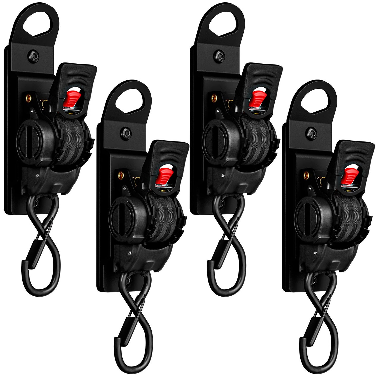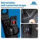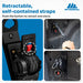 • Self-contained, retractable straps. Push the button to retract and store. 1"x10' strap.