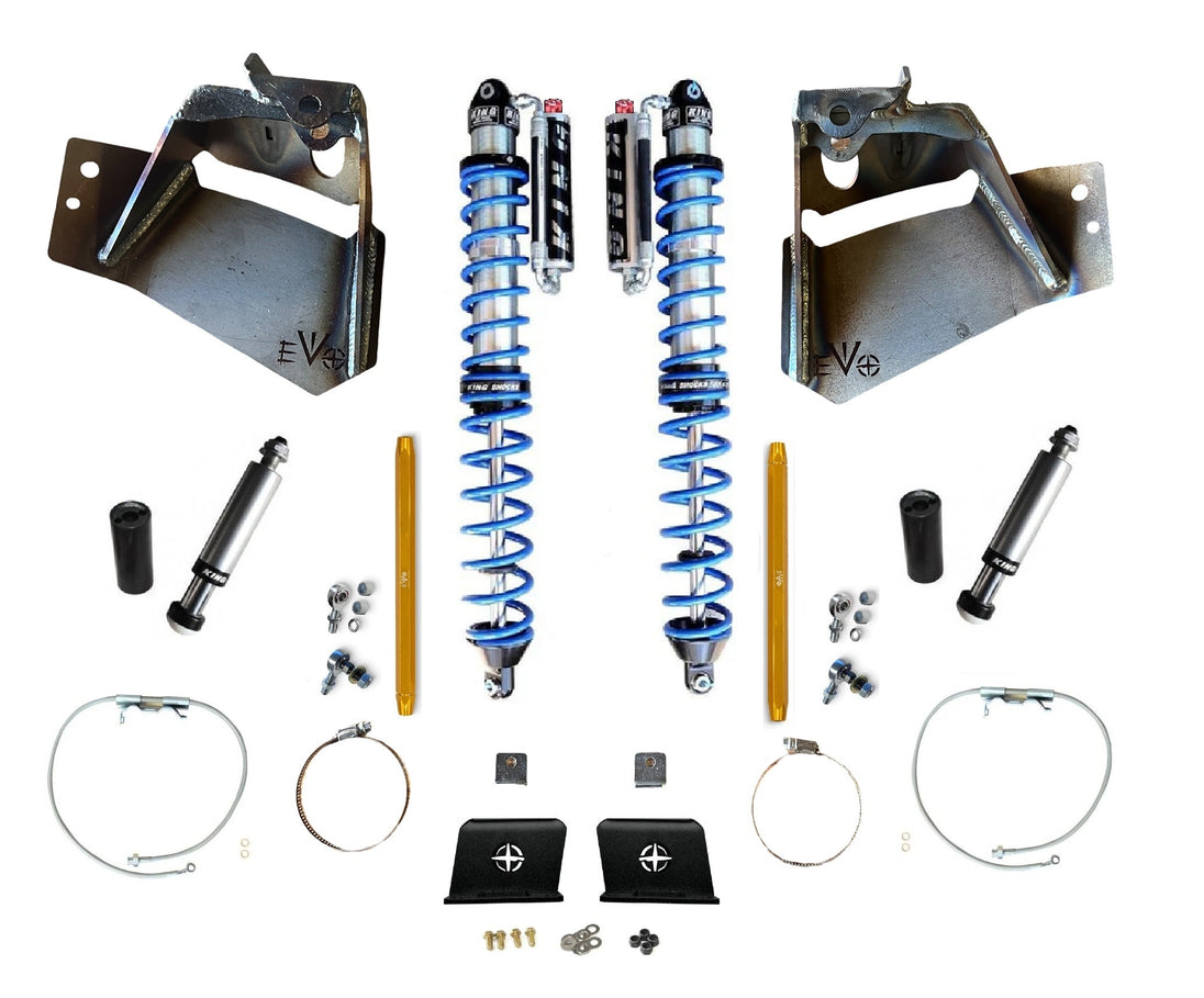 Choice of 2.5" or 3.0" Custom Built in all aspects for ideal packaging and performance.  EVO SPEC King Coilovers.   The best coilover kit with EVO SPEC King Racing Shocks.