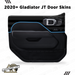 Whether you pick from our lineup of accent colors (including red, orange, golden yellow, black, blue, grey, white) or go fully custom, you’ll enjoy a look that’s truly unique. Plus, our vehicle-specific designs and Graphic Guardian program ensure an easy installation and the peace of mind that if something goes wrong, we’ll replace it for just the cost of shipping. Transform your Gladiator JT’s doors and get out there with confidence—your next adventure awaits!