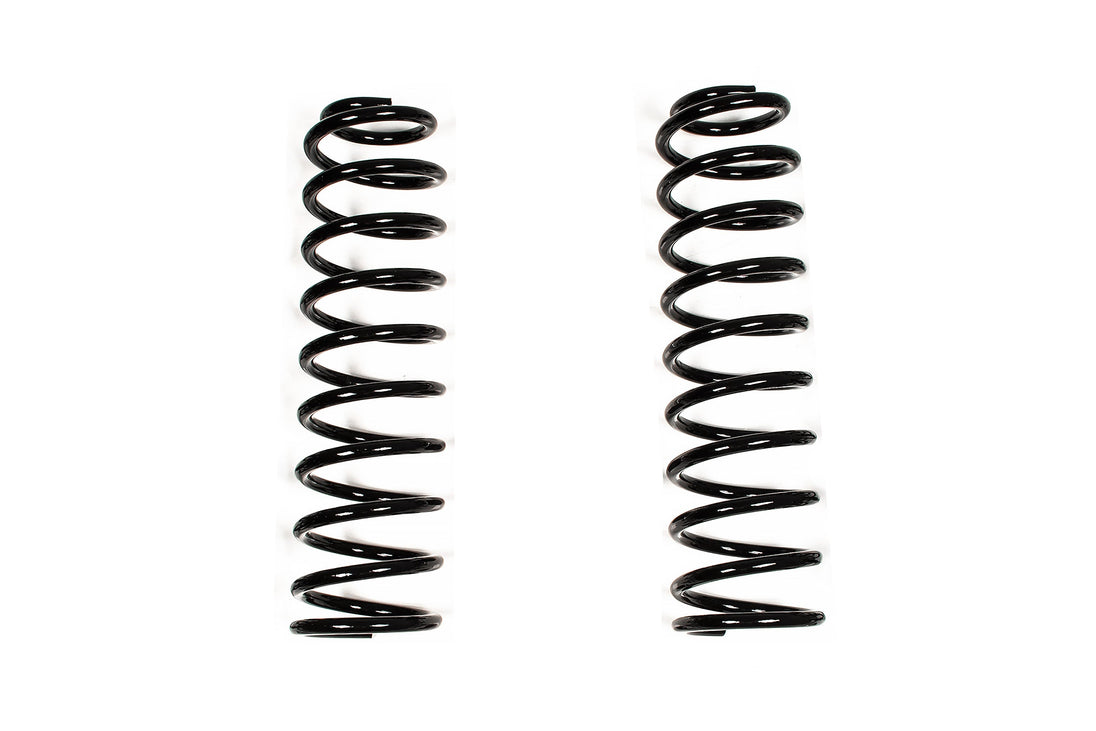 Custom tune the spring rate and ride height of your 2-inch lifted 2018-2025 Jeep Wrangler 4-door or 3-inch lifted 2-door by swapping front coil springs. A critical part of your vehicle's suspension, BDS coil springs support the weight of your Jeep's body and chassis while your suspension, wheels and tires follow changes in road surface.