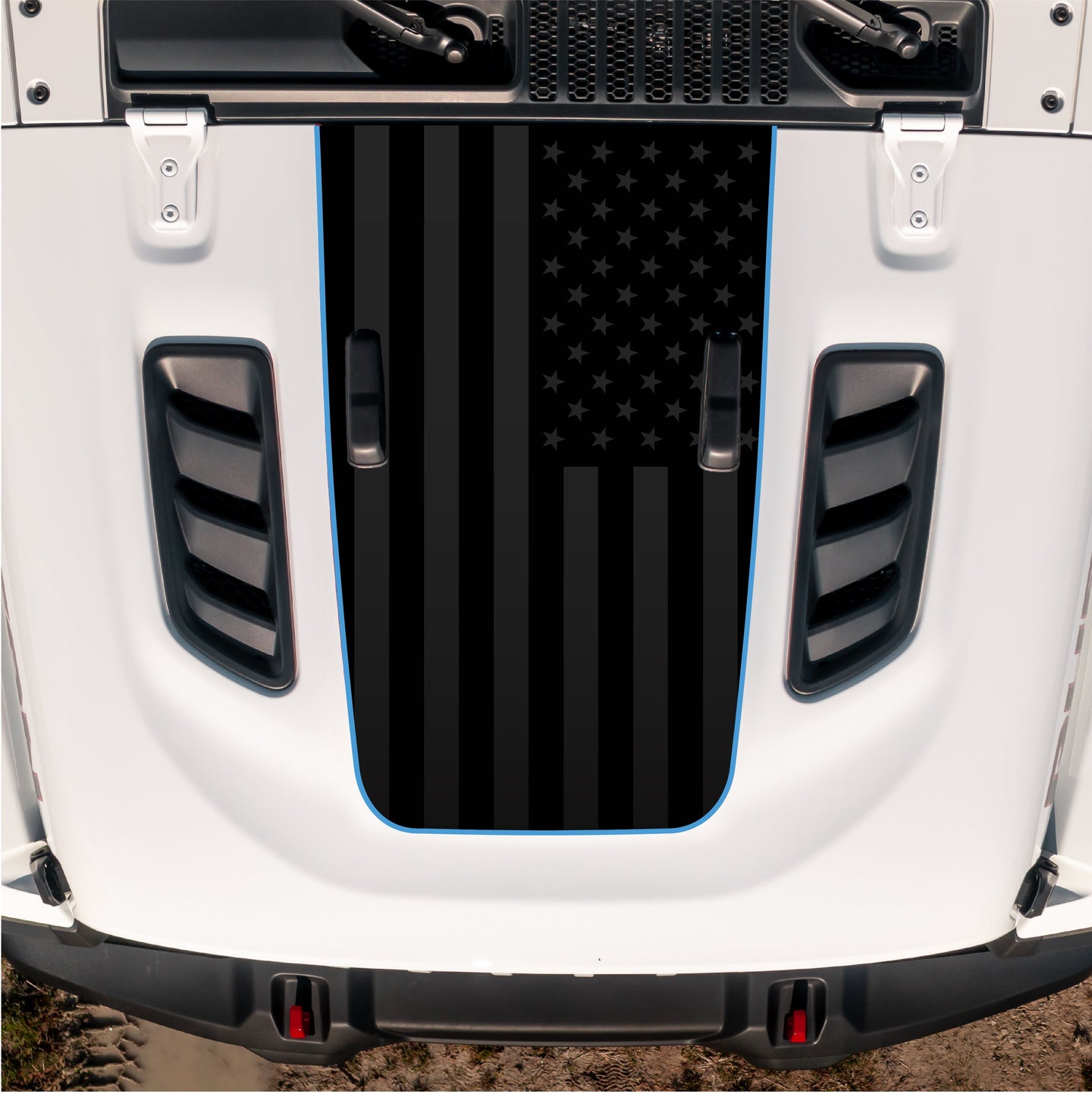 Introducing our exclusive Jeep Rubicon hood decal, the perfect accessory for off-road enthusiasts. Made with high-quality vinyl material, this decal is designed to withstand the toughest conditions, whether you're cruising down the highway or conquering the backcountry. The decal features a bold USA American Flag design that will give your Jeep a unique and customized look. The decal is easy to apply and can be removed without leaving any residue, making it a great choice for renters or those who like to change up their vehicle's appearance. Whether you're looking to add some personality to your ride or show off your love for the off-road lifestyle, this hood decal is the perfect choice. Add one to your cart today and take your Jeep to the next level!
