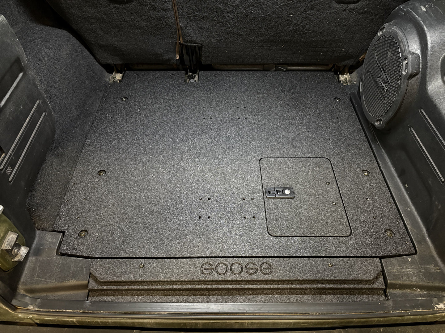 The Jeep Wrangler JLU Rear Plate System is designed and built with industrial grade plywood and coating using our propriety spray methods for superior durability and wear resistance. This Plate System allows the user to easily install various Jeep Specific modules including single and double drawer systems as well as the ever-famous Icebox module and the CampKitchen 2.3 for Jeeps. The plate system also makes a great platform for securing your own storage or gear including dog crates, other fridge slide brands, etc.