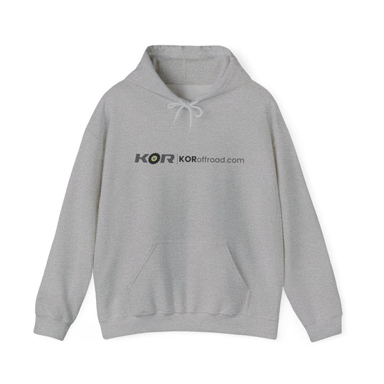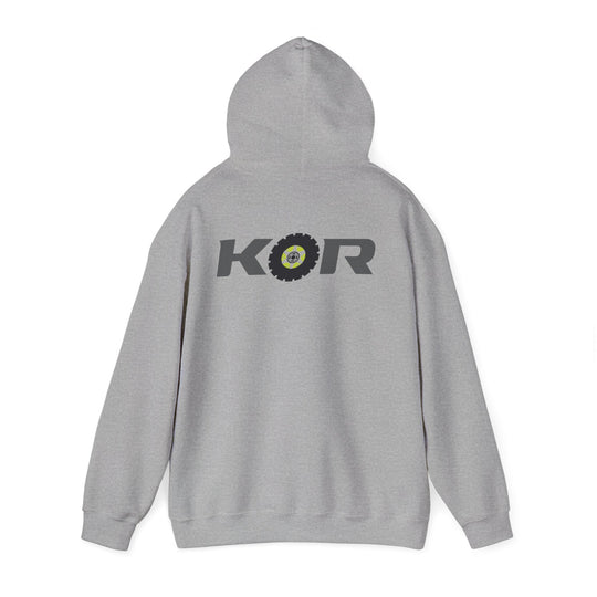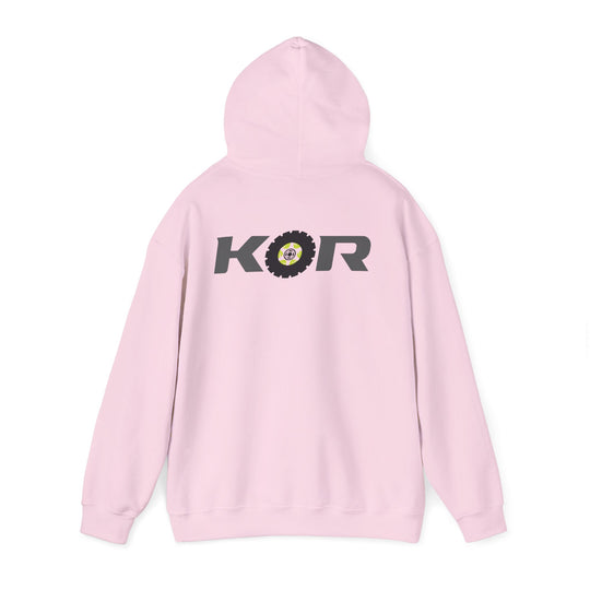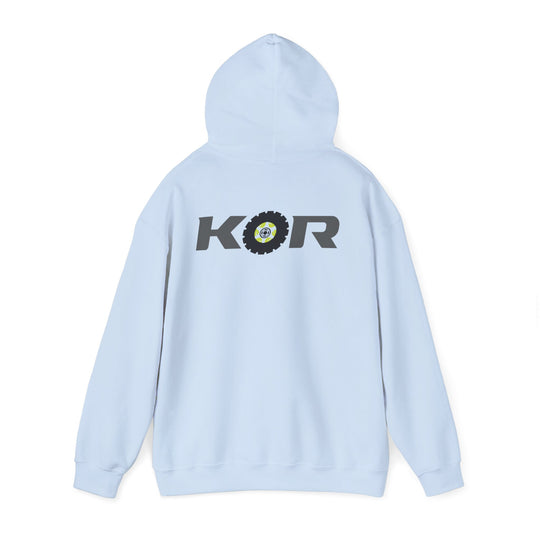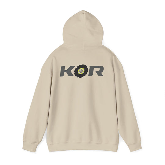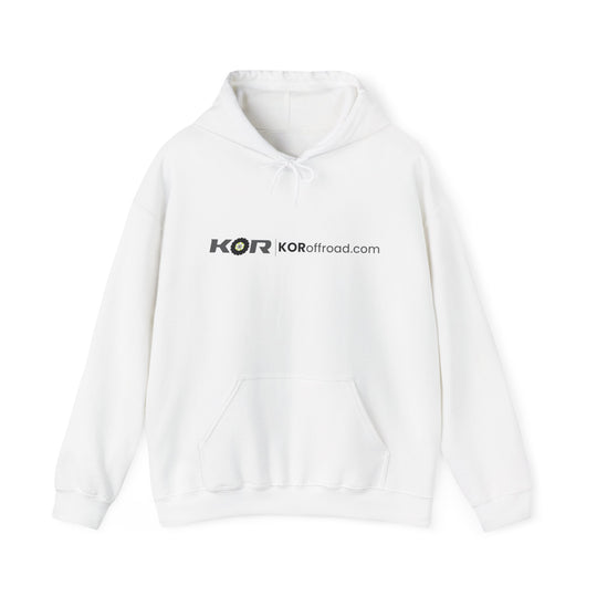 KOR Offroad Logo Hoodie – White Pullover with Tire-Graphic Back