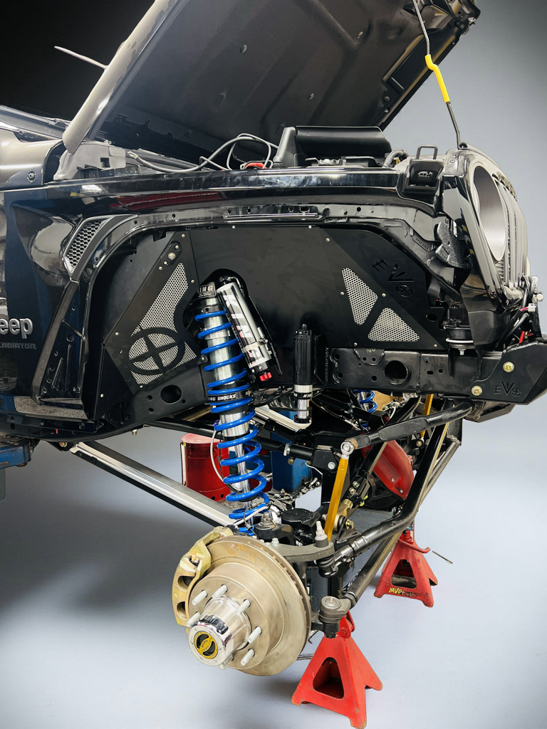3.5" Backspacing wheels required.  EVO SPEC 3.0 Shock kits will require 70"+ wide aftermarket axles. Long Arm Suspension Required (sold separately)