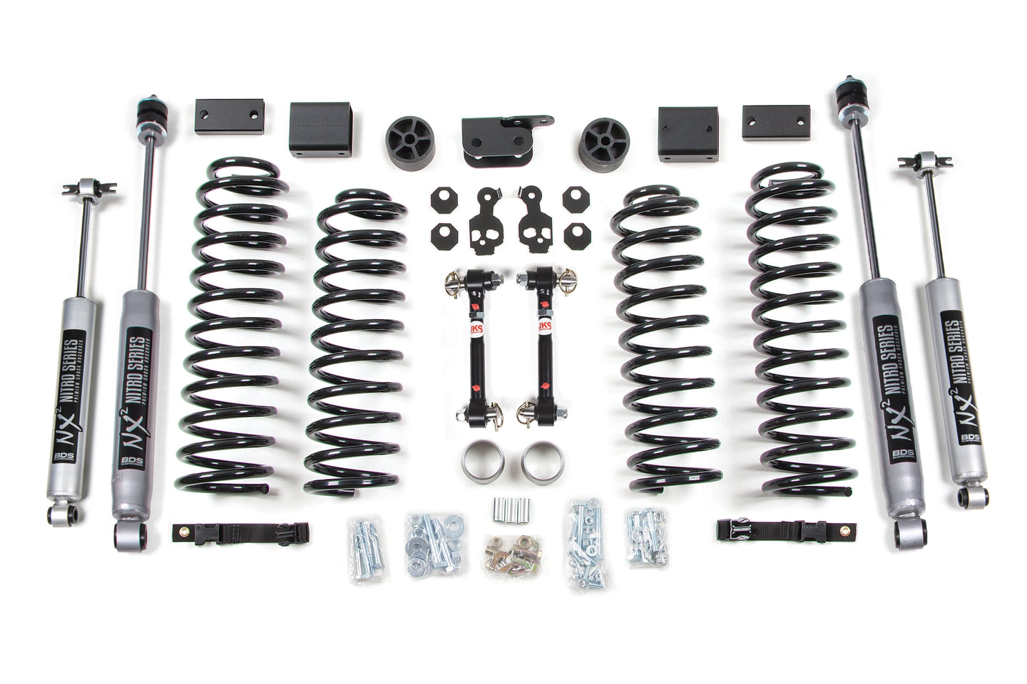 Upgrade the ride and style of your 2012-2018 Jeep Wrangler JK 4 Door with this 3-inch coil spring lift kit from BDS Suspension. Designed to improve stance this kit includes everything necessary to set your truck up right with clearance for up to 35" tires.