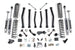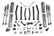 Up front the lift kit includes 4" Pro-Ride coil springs capable of full coil bind and 3" bump stop extensions to control the compression travel, but increase wheel travel. Also included are brake line brackets, sway bar links, and front track bar relocation bracket and pitman arm to improve the steering and handling geometry. The front suspension in this 4-inch lift kit is finished off with fixed length lower control arms with OE grade rubber bushings that re-position the front axle for proper alignment.