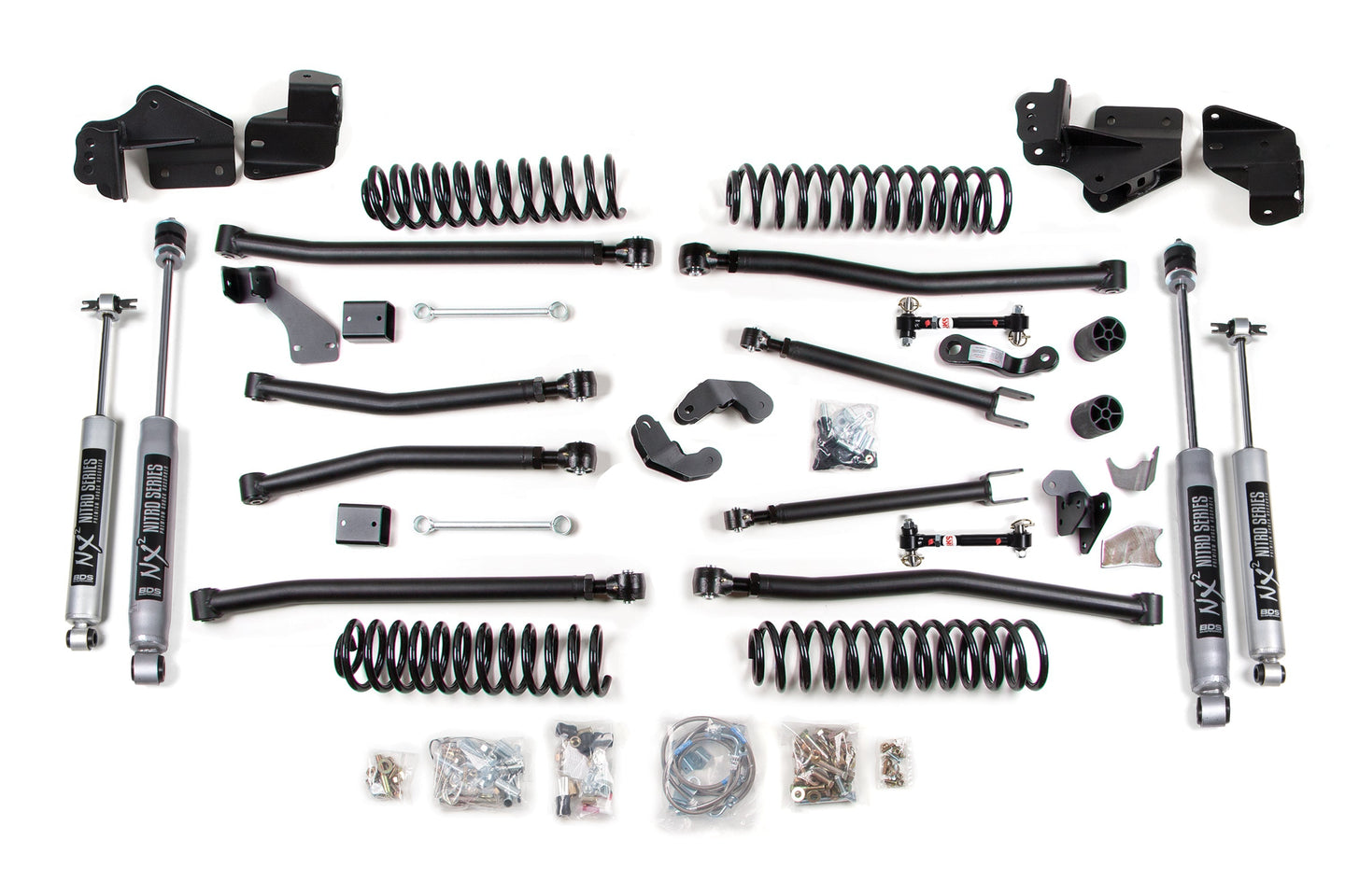 Maximize the capability of your 2007-2018 Jeep Wrangler 4 Door with this 6.5-inch lift kit with long arm conversion from BDS Suspension. Designed to improve stance this kit includes everything necessary to set your truck up right with clearance for up to 37" tires. This 4-inch lift kit system improves on the factory 4-link with a redesigned 4-link long arm to improve articulation and offer better control throughout wheel travel.