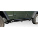 This true Rock Crawling design puts protection tight up under the side of your Jeep while adding a special side hoop to block those large outcroppings. Special no drill frame mounted design provides secure, bounce-free installation while keeping the mounted design provides secure, bounce-free installation while keeping the mounting points above the bottom of the frame for greater ground clearance. Each RRC Rock slider mounts to your Wrangler using a simple bolt on frame mount design for ease of installation and extra durability. Will not fit factory rock rail option.