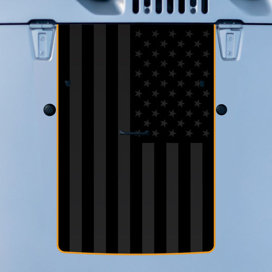 Matte Black with Gloss Black American Flag and Optional Outline Fits: 2007-2018 Wrangler JK/JKU Includes: (1) USA Flag Hood Graphic with Outline (1) Squeegee with felt edge Pre-layered to apply...Sale price From $122.39Regular price $152.99Sale price From $122.39Regular price $152.99 -