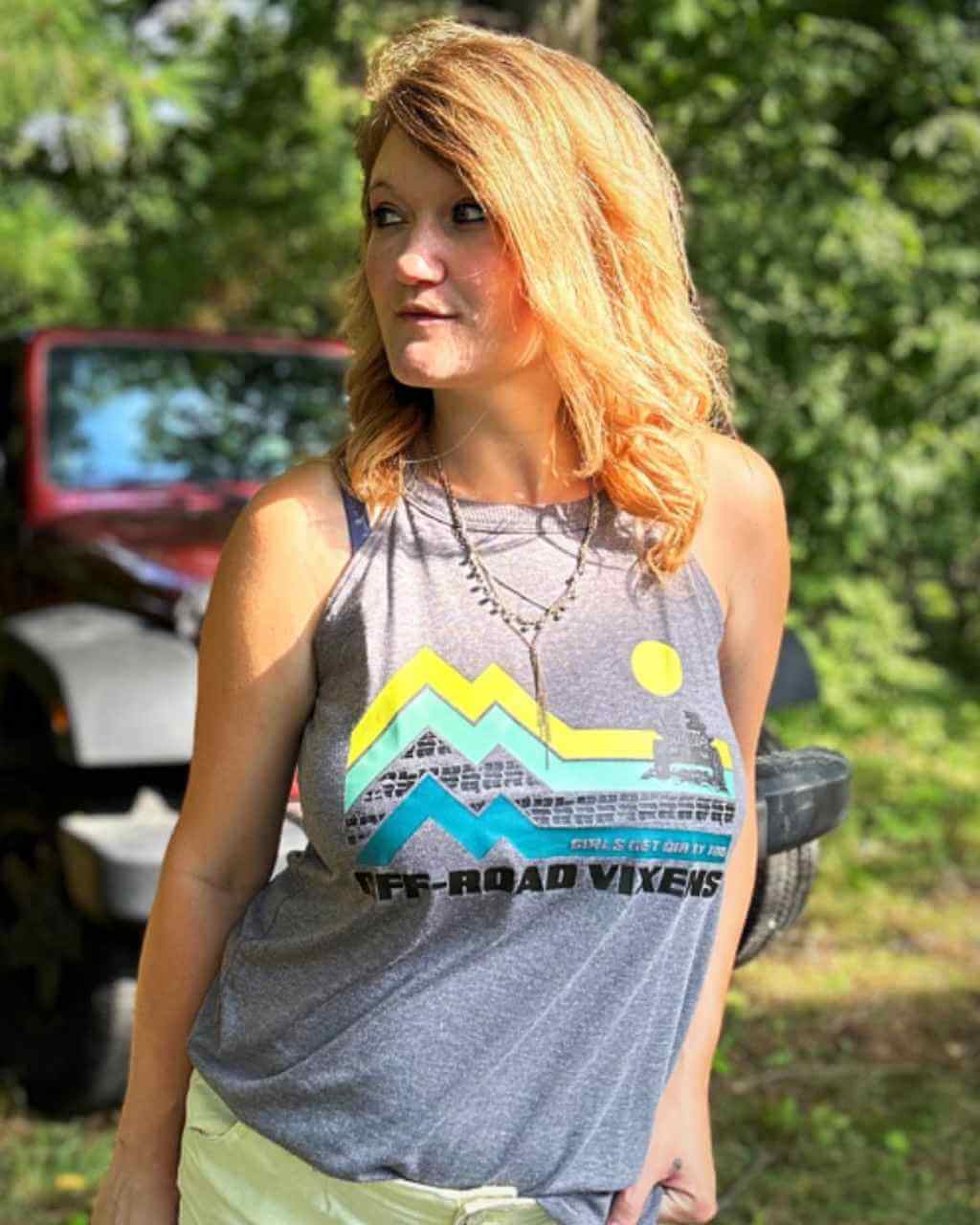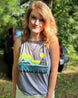 Jeep is the word! Rock this new design on the trails or on the track. Perfect fit grey frost rocker tank with new Jeep Adventure design on front in chartreuse, mint, and vintage teal, with our popular saying "Adventures Always" and ORV logo down the center of the back.