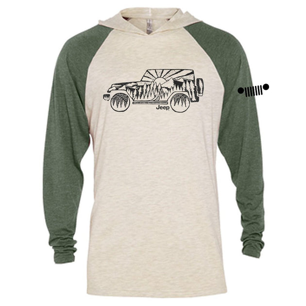Mens Jeep® Atomic Side Long Sleeve Hooded T-Shirt - Moss Green / Natural