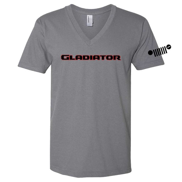 Mens/Unisex V-neck Jeep® Gladiator Red/Black T-Shirt - Slate Grey