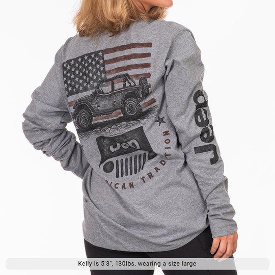 There's nothing more patriotic than the Jeep® brand. Show your love for American Tradition in this incredibly soft cotton/poly blend unisex long sleeve t-shirt. Back Print Art, Jeep® Logo on Front Left Chest and Right Sleeve 4.3 oz...Regular price $42.00Regular price $42.00 -