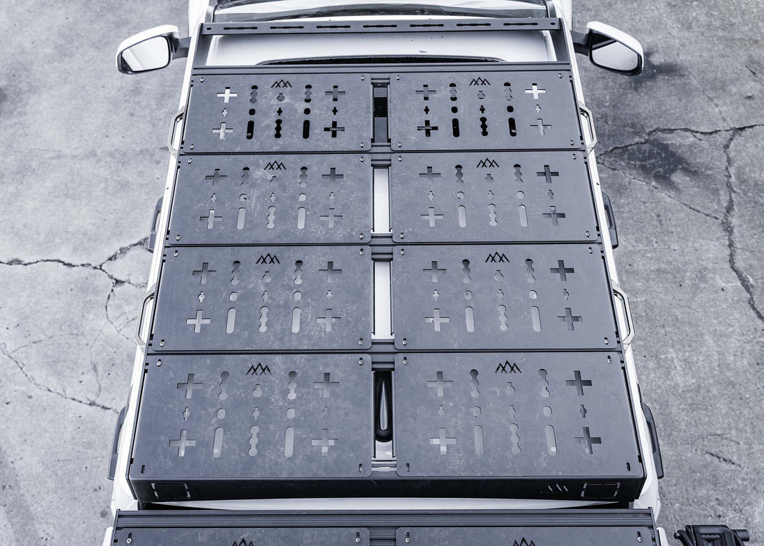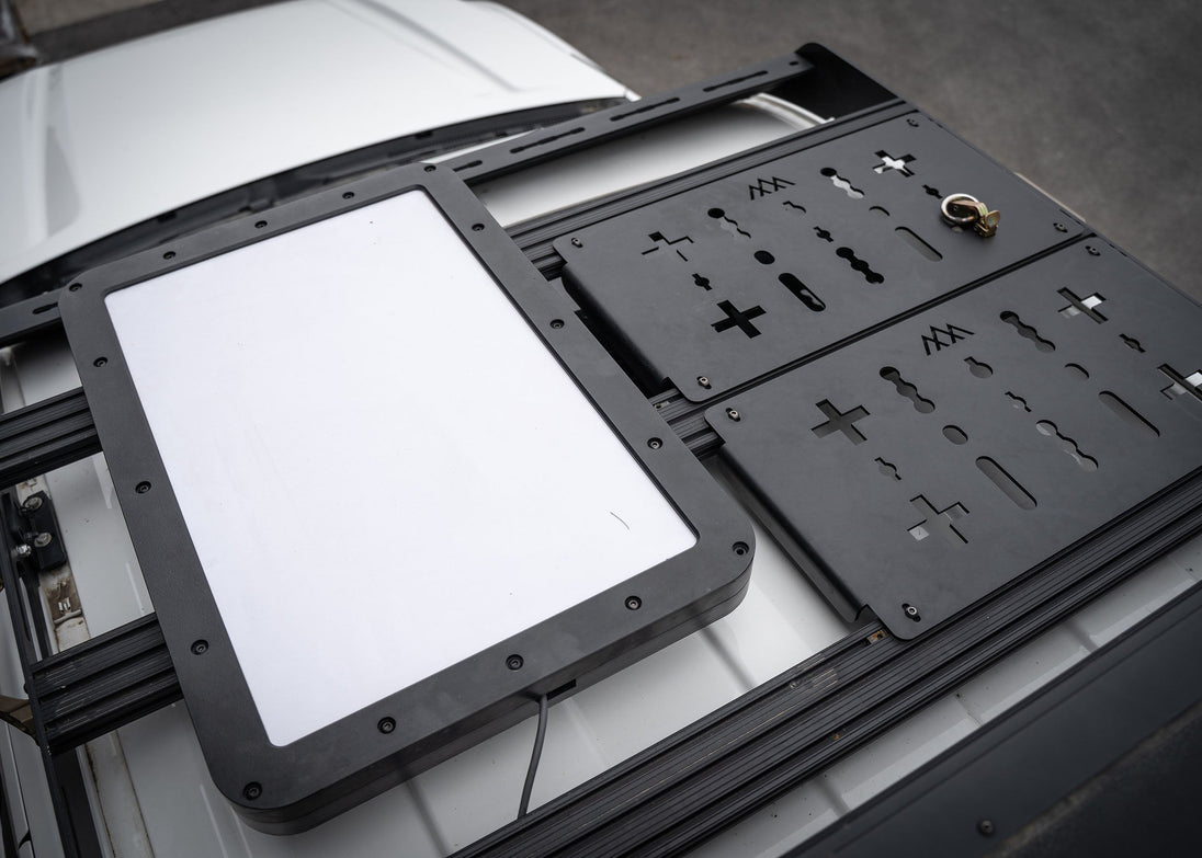 Our DRIFTR series roof rack for the 4th gen Toyota Tacoma not only gives you tons of added utility, but it unlocks an ecosystem of customization options to fully dial in your rig. Our racks are modular, light weight, super tough, have a low profile, install quickly, allow easy customization, have provisions for front and rear lighting, and ship cheap directly to your door. Dial in your rack exactly how you want it with our Universal Accessory Deck Panels and Awning Brackets.
