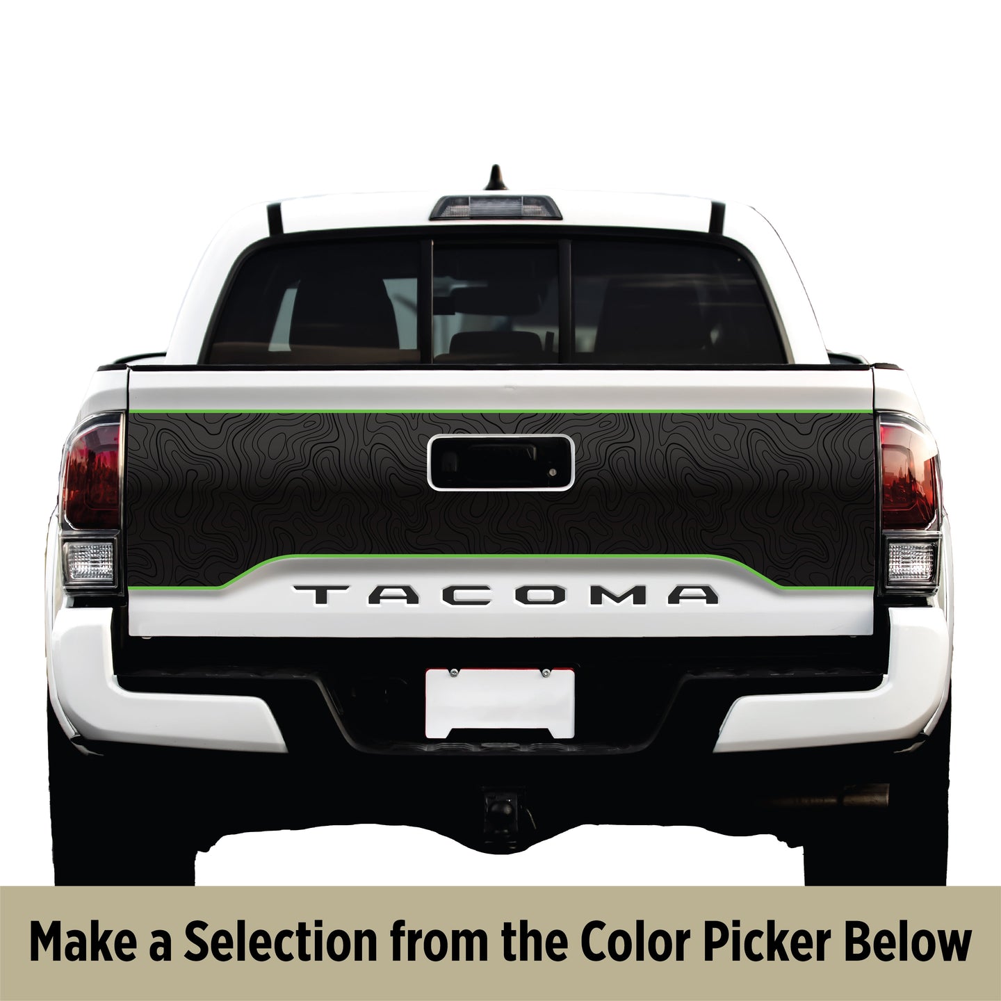 Unlimited Color Possibilities: Unlock a world of color possibilities with our outline options or take charge of your creative vision by customizing your tailgate graphic with our color hex picker, enabling you to select any shade within the RGB colorspace.