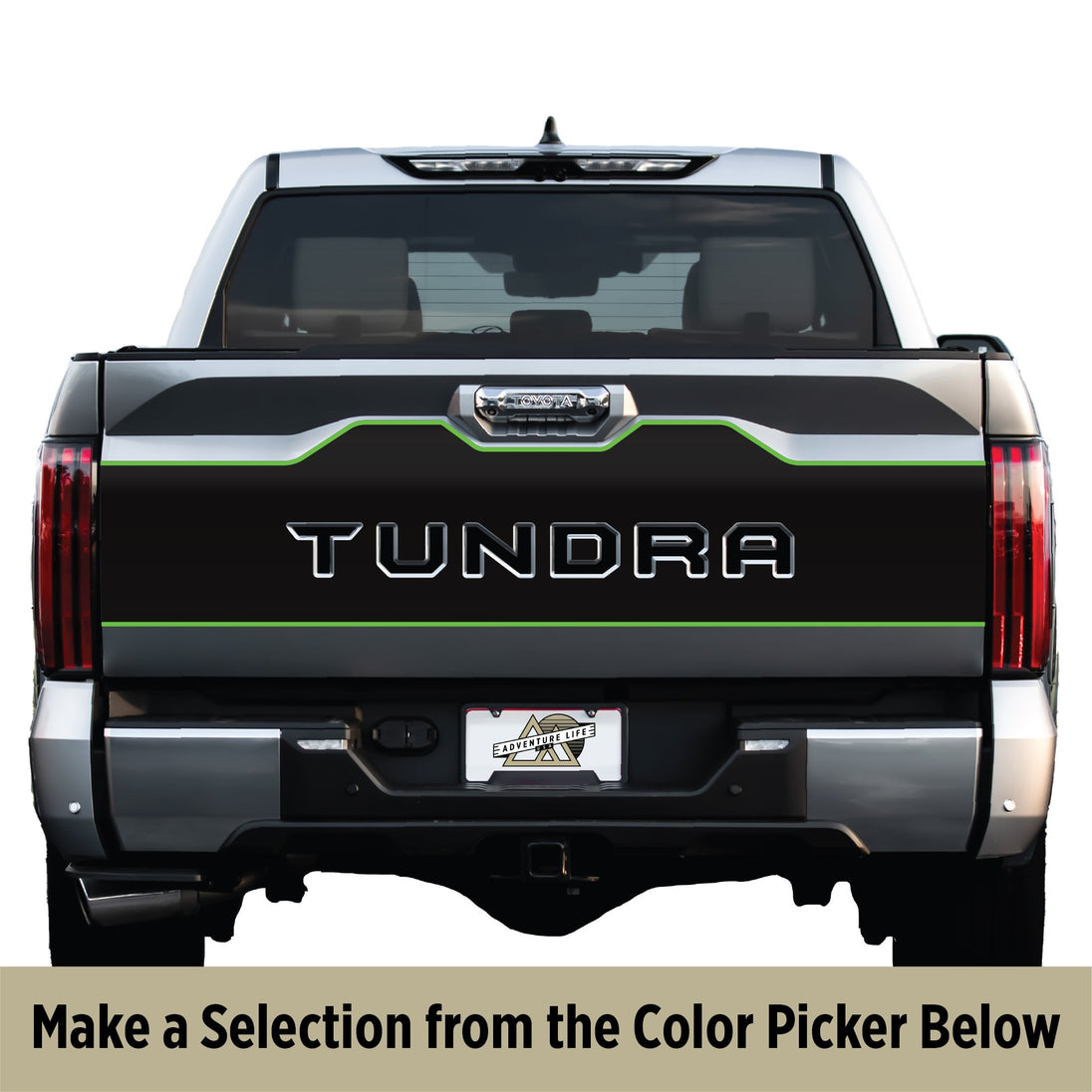 Unlimited Color Possibilities: Unlock a world of color possibilities with our outline options or take charge of your creative vision by customizing your tailgate graphic with our color hex picker, enabling you to select any shade within the RGB colorspace.