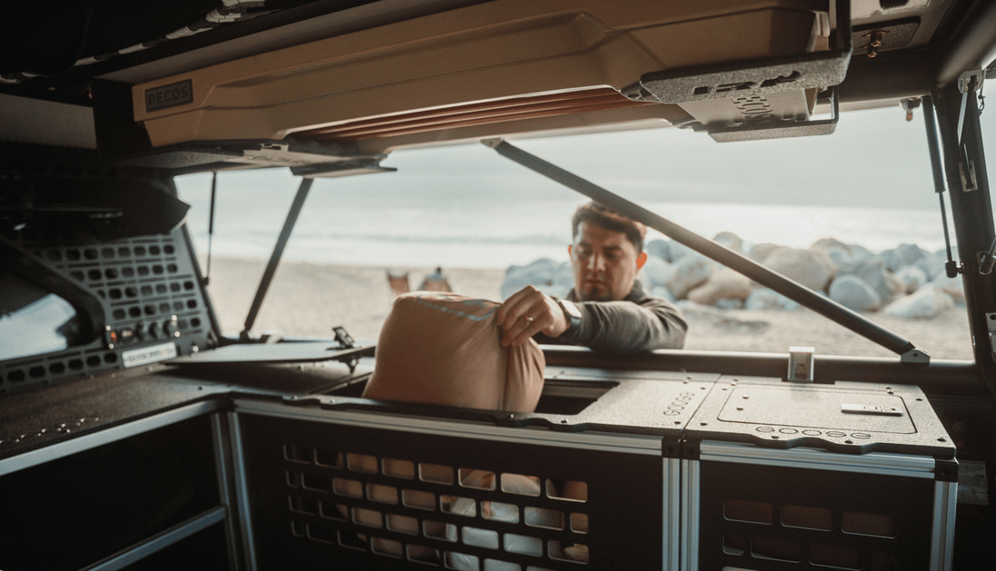 Bed Cargo & Bench and Storage Module - Full Package – The ultimate setup, featuring the Bed Cargo Modulealong with Bench and Storage Modules on both driver and passenger sides for maximum storage and utility.