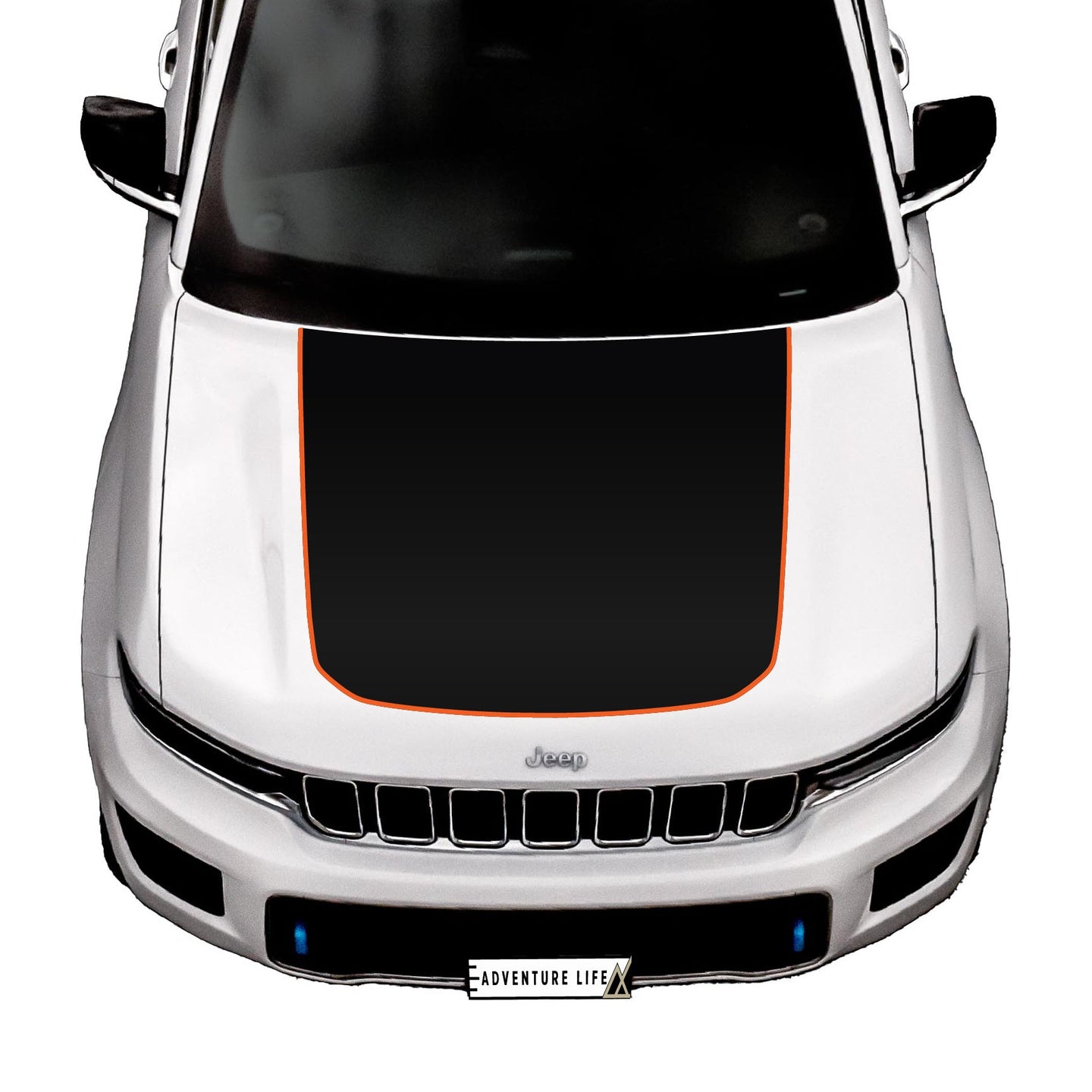 Upgrade the look of your Jeep Grand Cherokee WL with this stylish and functional hood graphic, proudly designed and manufactured in the USA. This graphic is specifically designed to cut out hood glare from the sun shining off your hood while adding a touch of style to your vehicle.