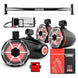 The four NXL-X8TPNEO’s deliver crystal-clear sound in any environment. Available in Black, White, Red, and Carbon Fiber finishes, the NXL-X8TPNEO complements any setup with style. Their enhanced clamping system ensures secure placement during the most rugged off-road adventures. Featuring a passive woofer radiator for added bass impact and an eye-catching RGB LED lighting system, controlled by the included LED-BTC.