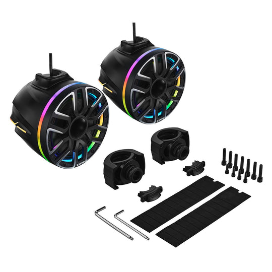 JL-TUBE 4x 8" Marine Towers Speakers with RGB LED Lights, 4-Channel Marine Amplifier and AMPKIT for Jeep JL