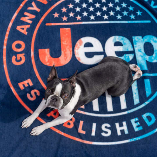 Roll up the fun with this fresh and vibrant Jeep Tie Dye blanket! The functional design features a convenient carrying handle and rolls up for easy storage. It's perfect for picnics, sporting events, and open-air Jeep rides. 50" x 60" Polar...Regular price $29.99Regular price $29.99 -