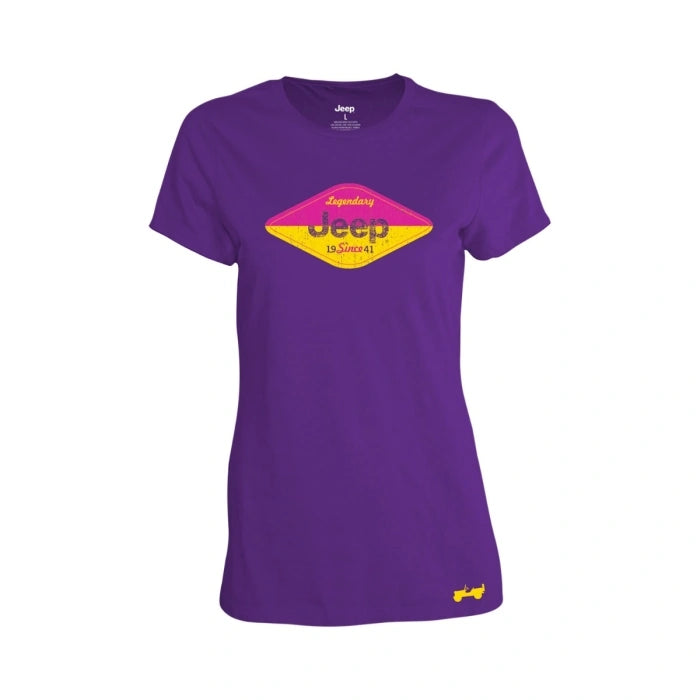 Celebrate Jeep® heritage with this purple fashion-fit tee. Made from soft 100% ring spun cotton, it features a classic crew neck and tagless neck label for all-day comfort. The front showcases the Jeep® logo in a “Legendary Since 1941” graphic, while the lower left hem features Jeep® Willys branding—perfect for Jeep® fans who appreciate timeless style.